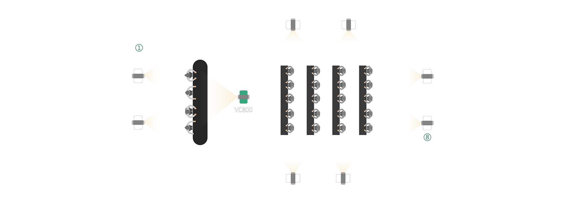 The VC800 multi-camera solution enables up to 9 cameras to work at the same time. You can control each camera separately, put all cameras in one picture, or set certain picture larger/full screen. The deployment is simple by connecting VC800 and VCC22 cameras to PoE switch only with Ethernet cables, no need for extra power supplies for VCC22, or extra video matrix.